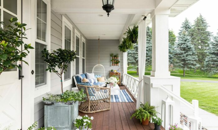 I am thrilled to be joining the May Pinterest Challenge – Porch & Patio hosted by Country Road 407.  This month the challenge is taken from this wonderful porch by Bria Hemmel Interiors.  This would be a dream come true porch for most of us.
