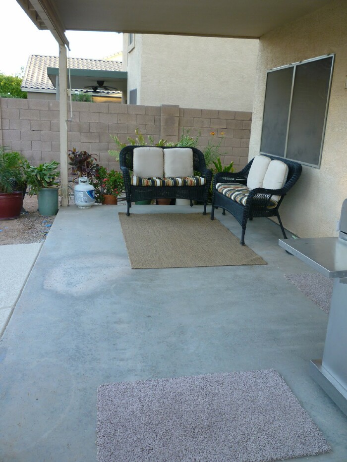 Once the pool was in I placed everything from our previous home on the patio, not very stylish, but at least it was a beginning and a clean space to relax.