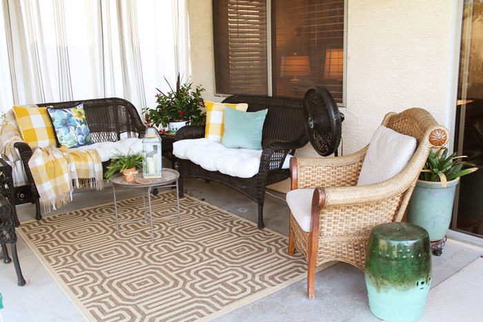 Your patio looks so pretty decked out for summer. Blue and yellow is such a pretty combination to use for summer decorating. I’ve never seen a yellow plaid throw and I love yours. I hope that you enjoy a fun summer of swims and relaxing evenings on your pretty patio.