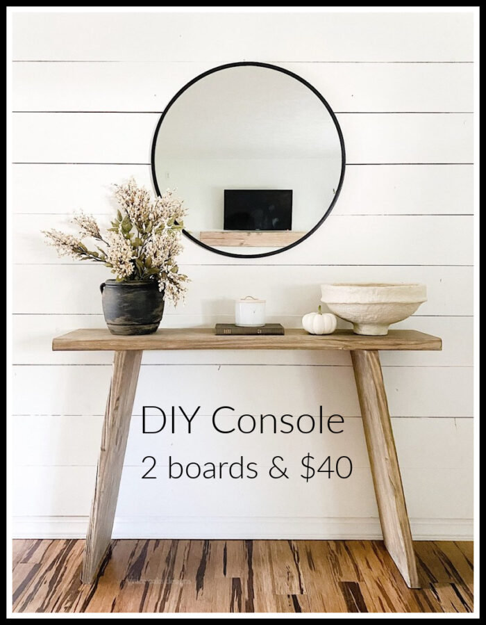 An entry or console table can be really expensive and finding the right size and style is another problem. I love this step by step tutorial to make this fabulous console table with two boards and $40.