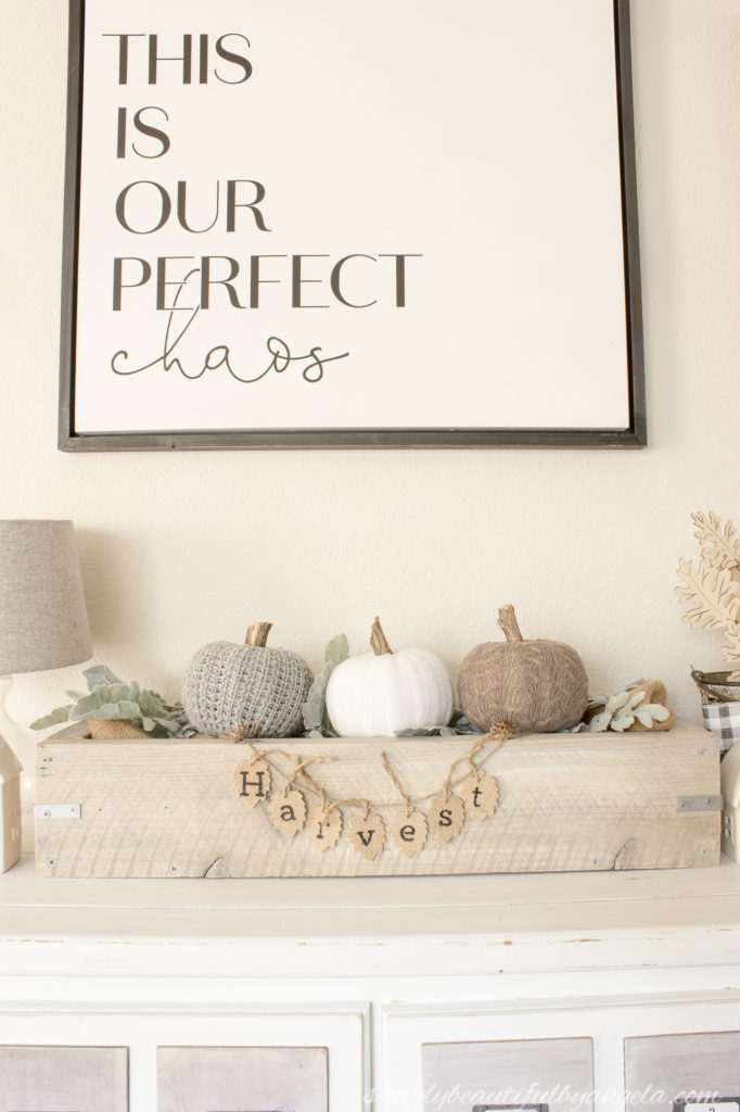 This is a great $ Store decor project that you can use all the way through Christmas. DIY Sweater Pumpkins. Check out her easy tutorial.