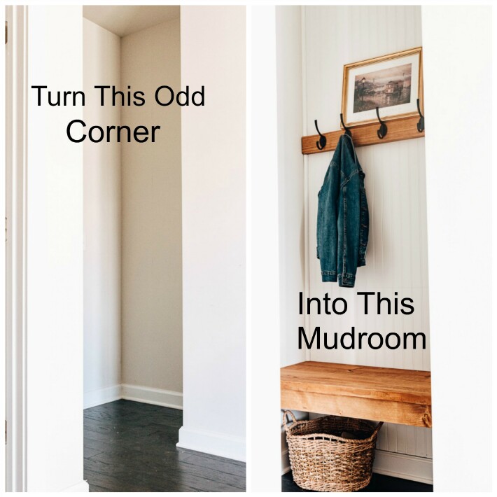 Every home has a funny corner somewhere, this one happens to be right inside the back door.  What a great space to turn into a Mudroom