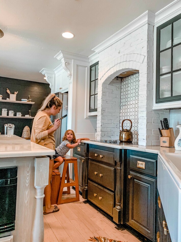 This all white kitchen got a makeover with a little black paint – it went from pretty to fabulous in a second.