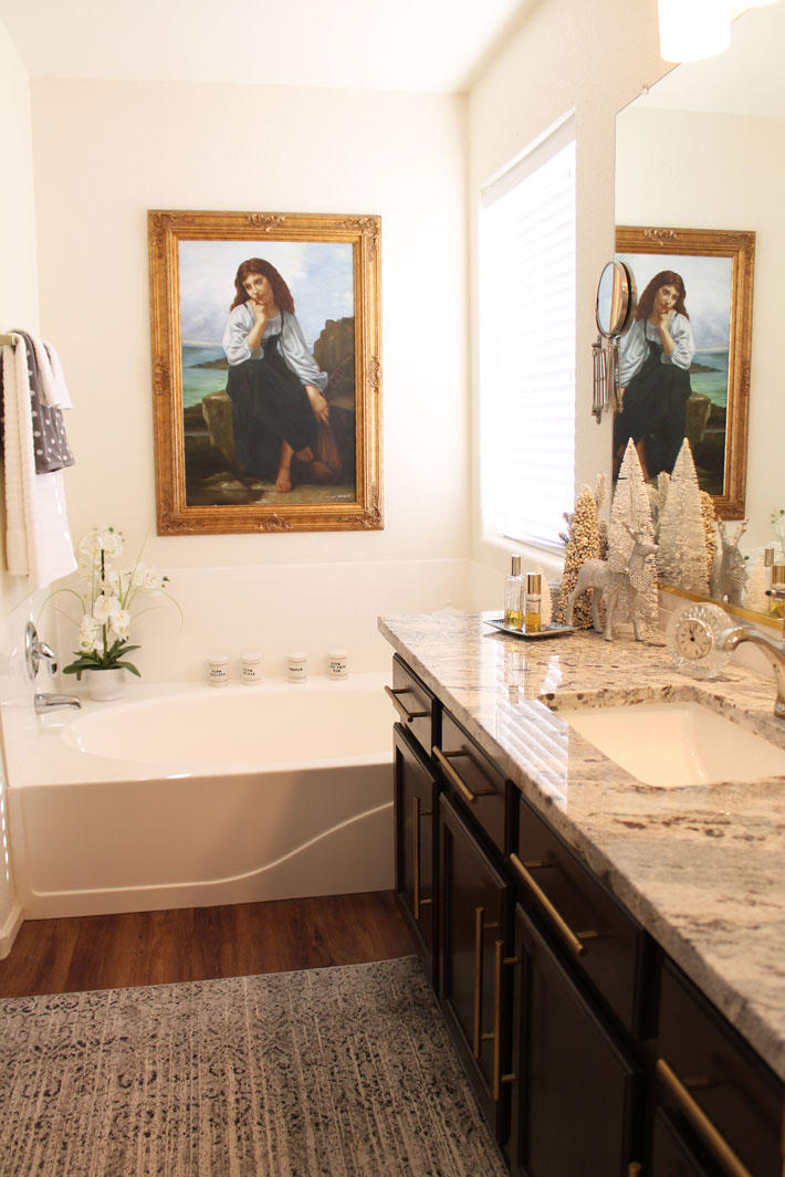 What a gorgeous bathroom, I love that you’ve added Christmas touches to your master bath. That is one space I never think to do, thank you for the inspiration.