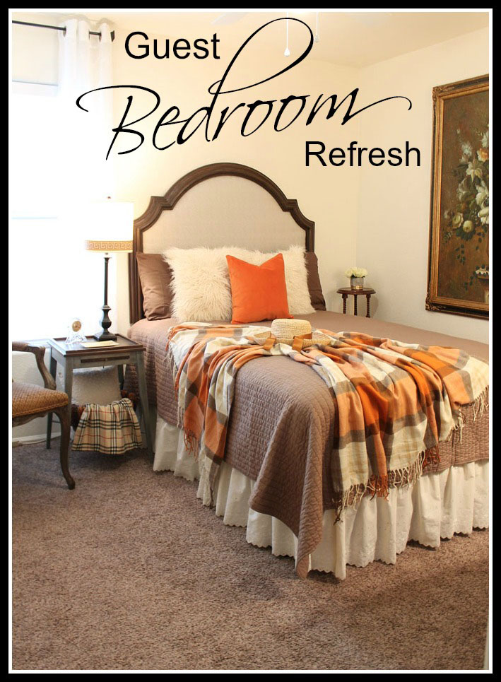 This room had been decorated with soft gray colors, so I decided to spice it up a bit with some brown and rust tones. A change of color is always a quick way to give any room a refresh.