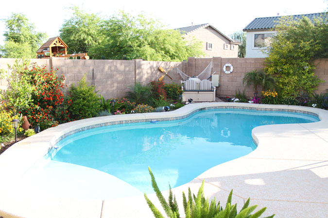 The pool was a priority when we moved in. Immediately after the kitchen renovation, we started on the pool. The plants have all grown and look so pretty. My favorite place to be all summer.