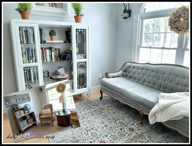 I love how this landing at the top of the stairs became a fabulous library.  The before and after show how a little thought can totally transform a space.