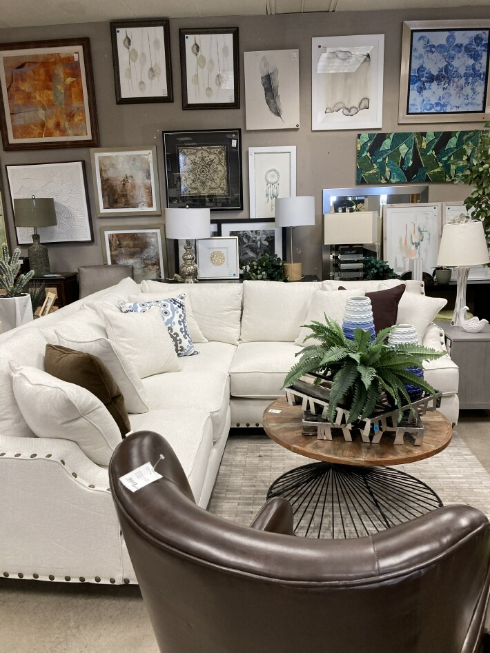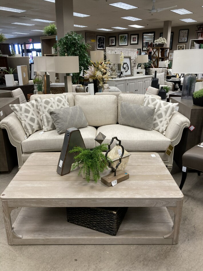 The minute you walk in the door you are in awe.  I didn’t get all the prices but just think quality at half price.  This sofa was $599.  Accessories and pillows are a steal for sure.  Most pillows around $15 and accessories around $20 or less.  Lamps about $40 or less.