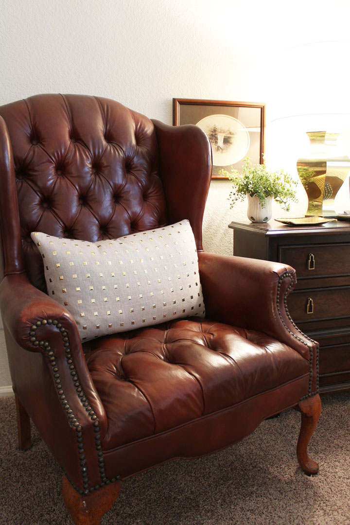 This tufted leather chair adds to the character of our bedroom too. It’s another wonderful thrifted treasure that I found for $100.