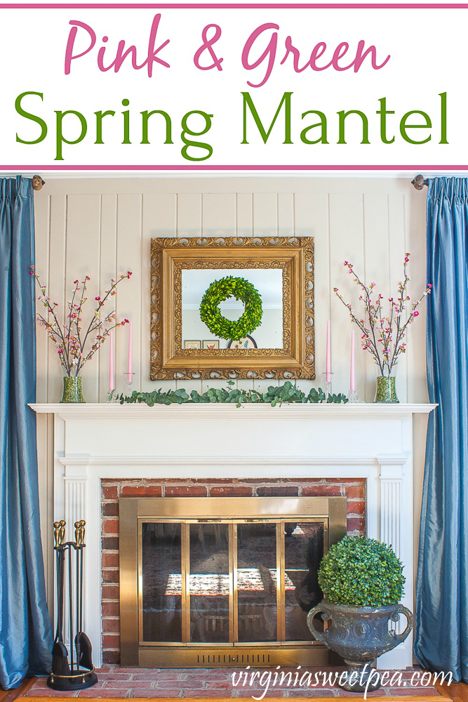 I love this pretty Pink and Green Spring Mantel. Love how she uses such light and airy stems for such a pretty fresh spring look.