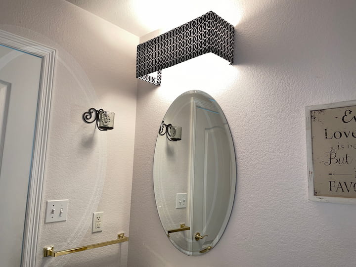 This is a fun project.  Got an ugly vanity light – just cover it up.  Check out how she did this.