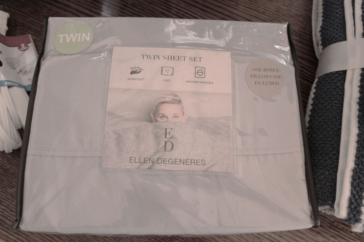 Another essential is a set of towels.  I liked these striped ones, so a bath towel, hand towel, and two washcloths.