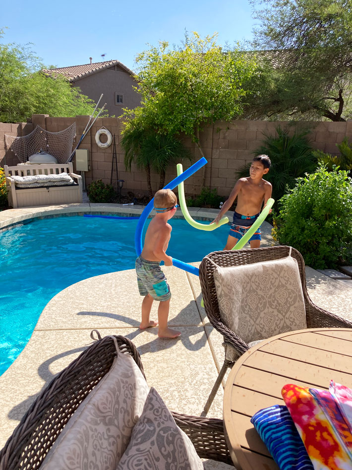 Those pool noodles made great swords too.