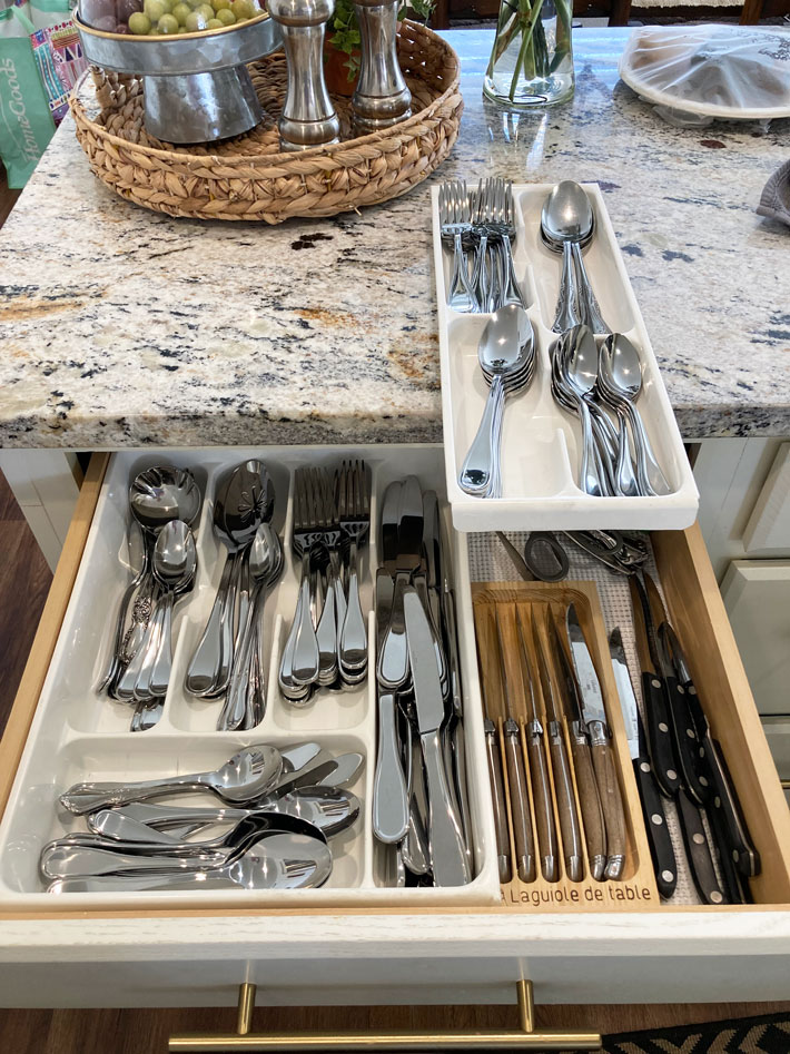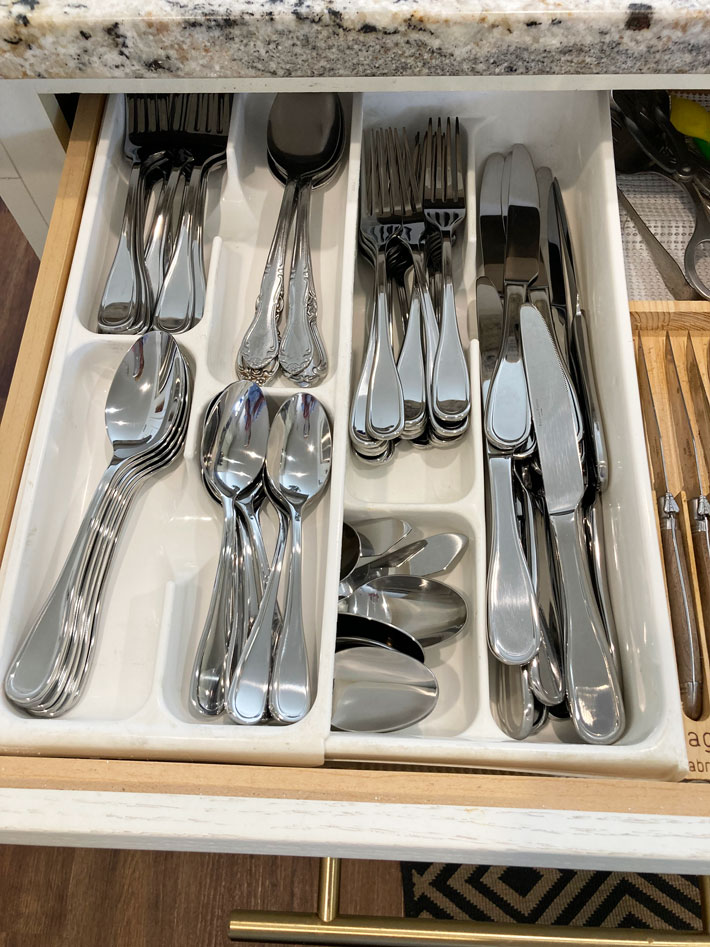 I love this silverware tray, so nice to have two levels to hold extras.  I got a service for l6 so now I have tons for all our next parties.
