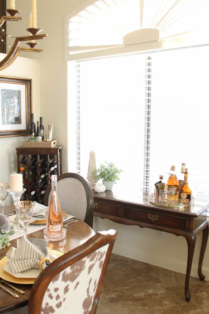 I love how space saving this is, Marty. When we have company, I like to have red and white wine, glasses, and a bowl nuts or something salty. I think it’s a nice touch and really all that’s required of a hostess. You’ve created a nice inspiration for a bar set up!