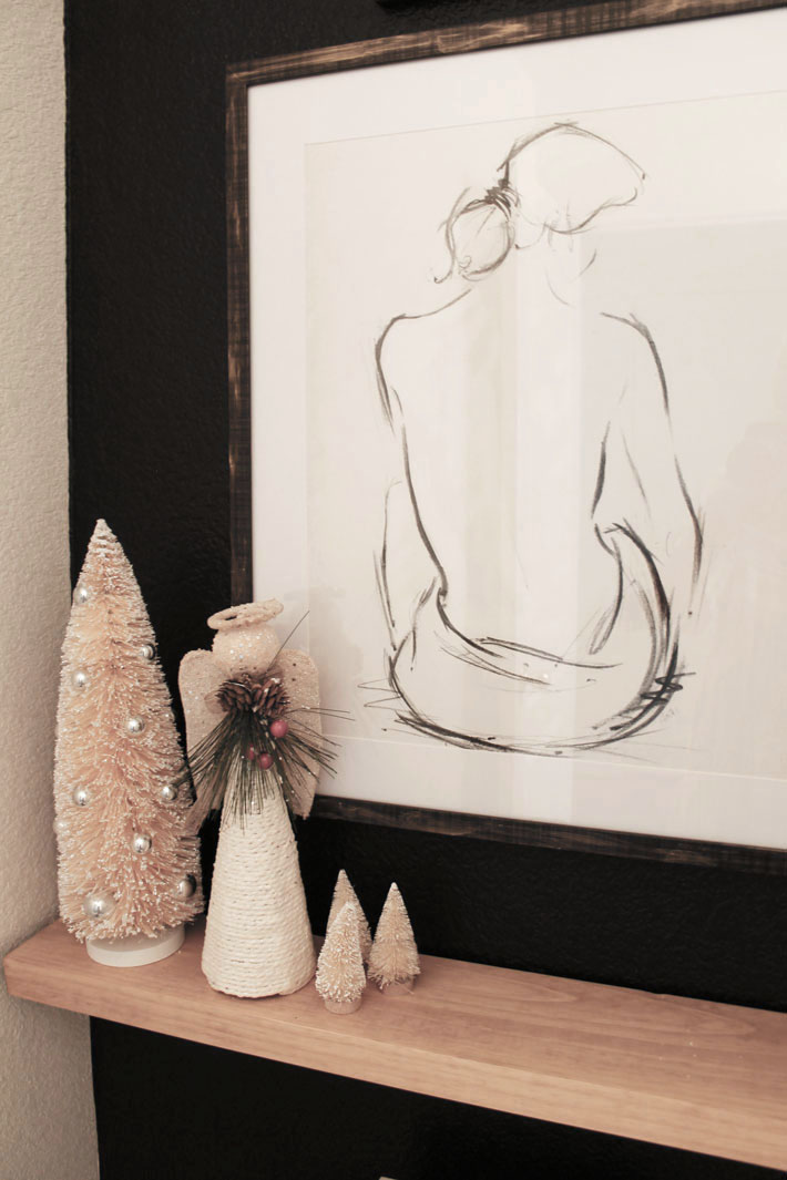 Cream and white trees and a pretty angel for the shelf. Simple and easy.