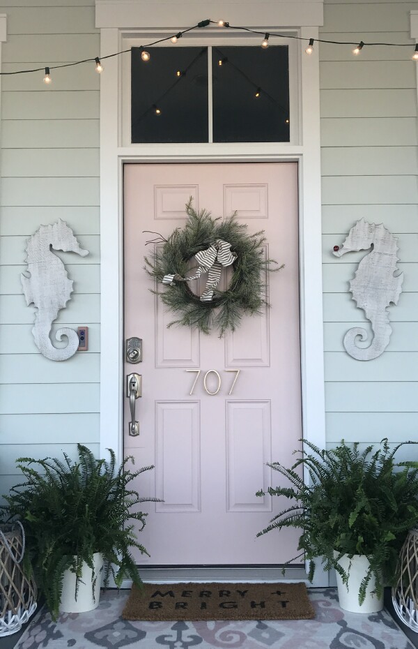 Quarters One – Shand decorates her gorgeous front door with a simply elegant wreath to invite you into her amazing home.