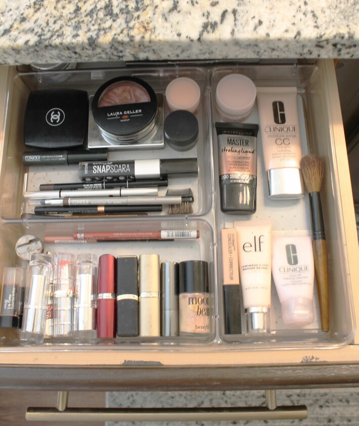 I found this wonderful drawer divider that fits perfectly at Home Goods.  I sorted through all the makeup I don’t use, outdated, just junk, and kept way too much, but now it is organized and easy to see what I need.