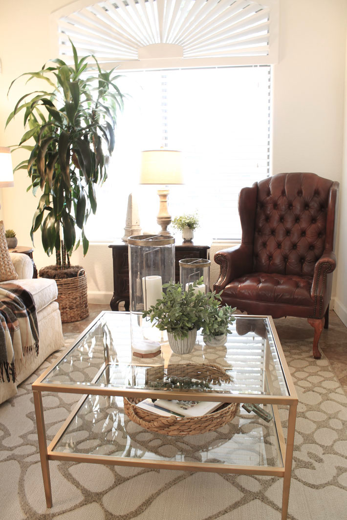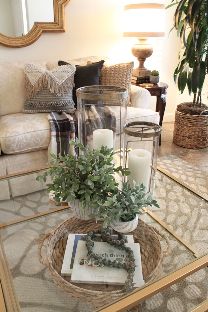 A couple of lanterns and simple greenery was all I used on the coffee table.