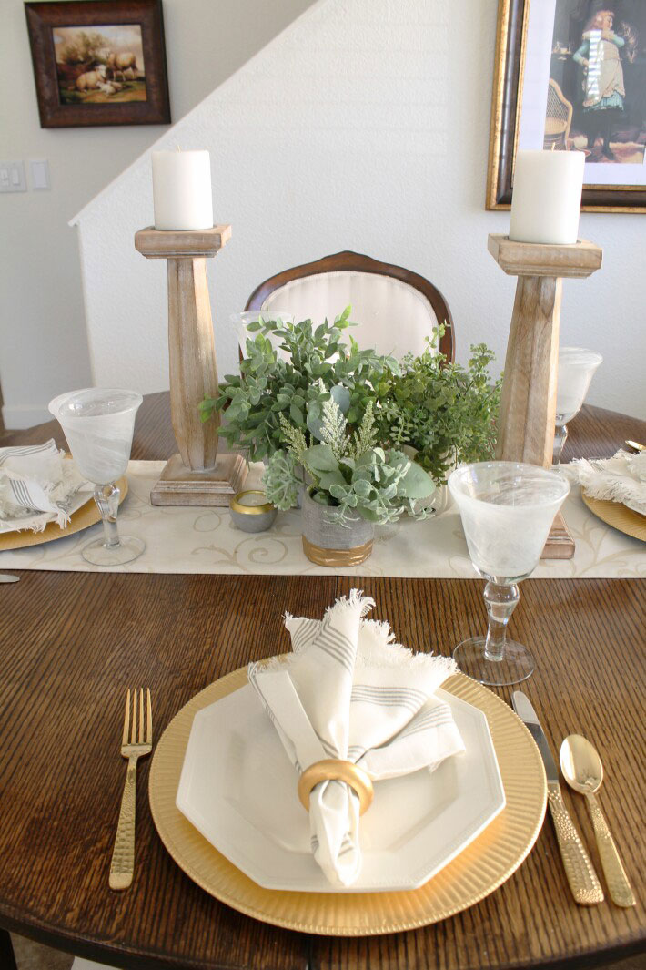 I kept the same centerpiece I had and just changed out the napkins to some soft green striped ones.