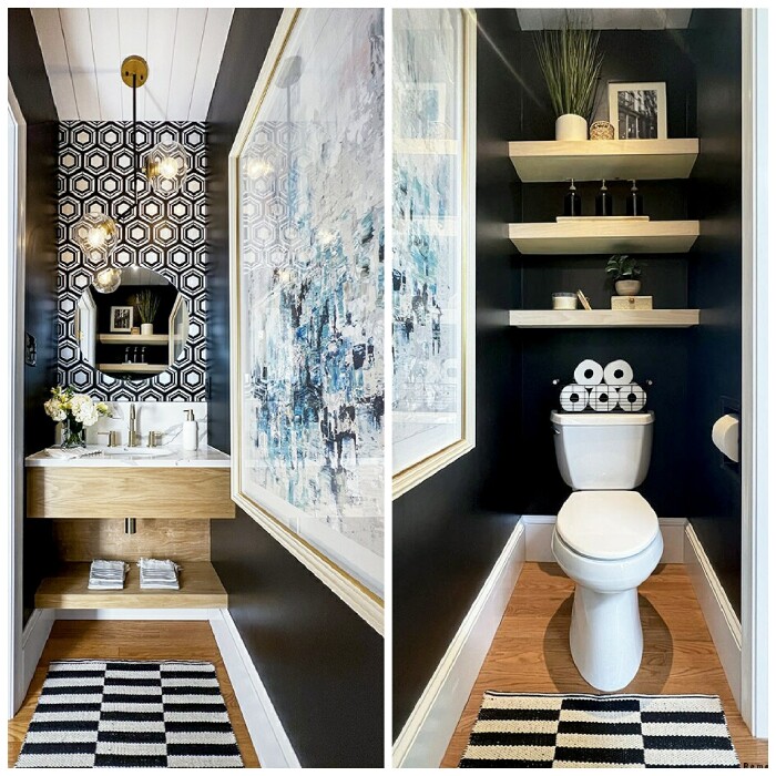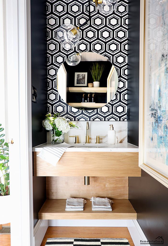Paint, Stencil, and a DIY Vanity and you have this amazing Powder Room.