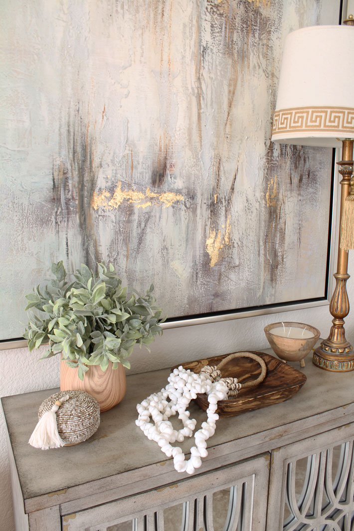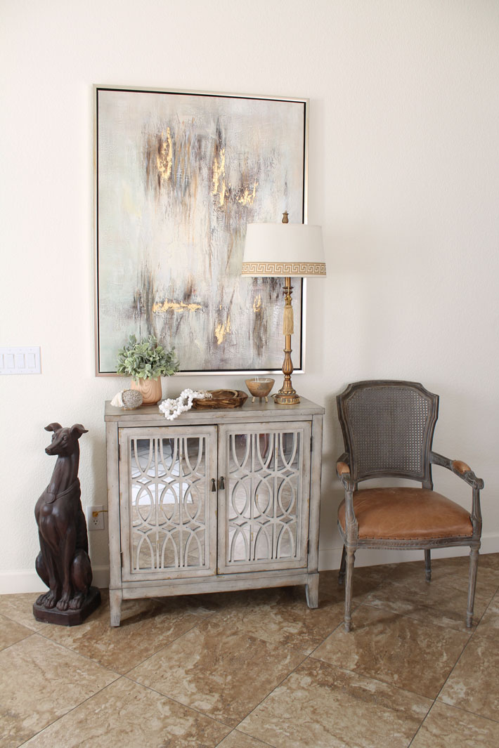 It is so easy to change things up for the different seasons. This chest and painting seem to go with anything. This is what I’ve had for spring. You can see my entire 2022 Spring Home Tour here.