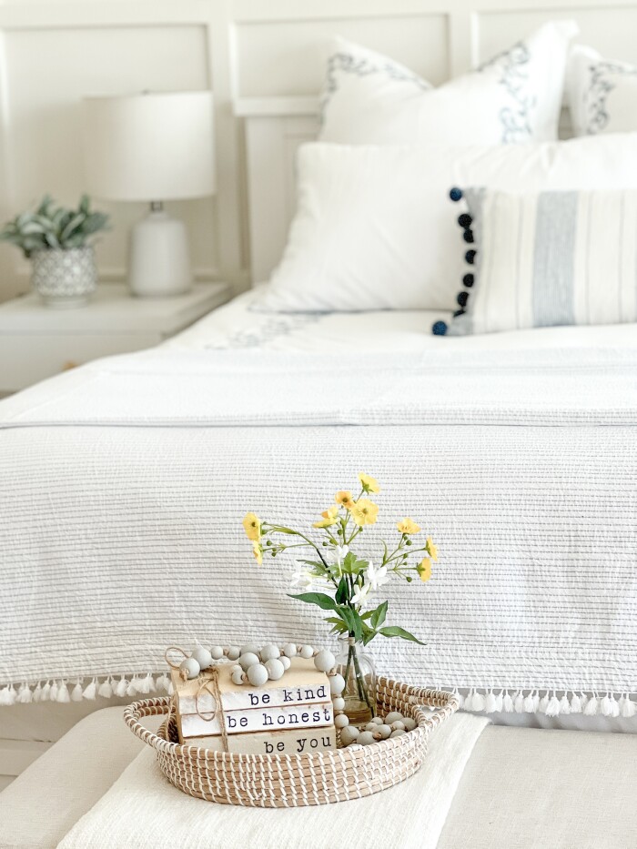 Pasha Is Home – Pasha started her summer decor in the bedroom. She shows us how “neutral” is never boring. Love the flowers picked fresh from the garden.