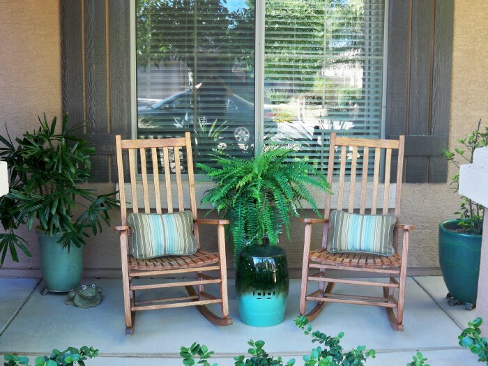 I think the porch decor should reflect the style of the home you have. The outside of my house is very simple with little architectural detail. So the furniture needed to follow suit.