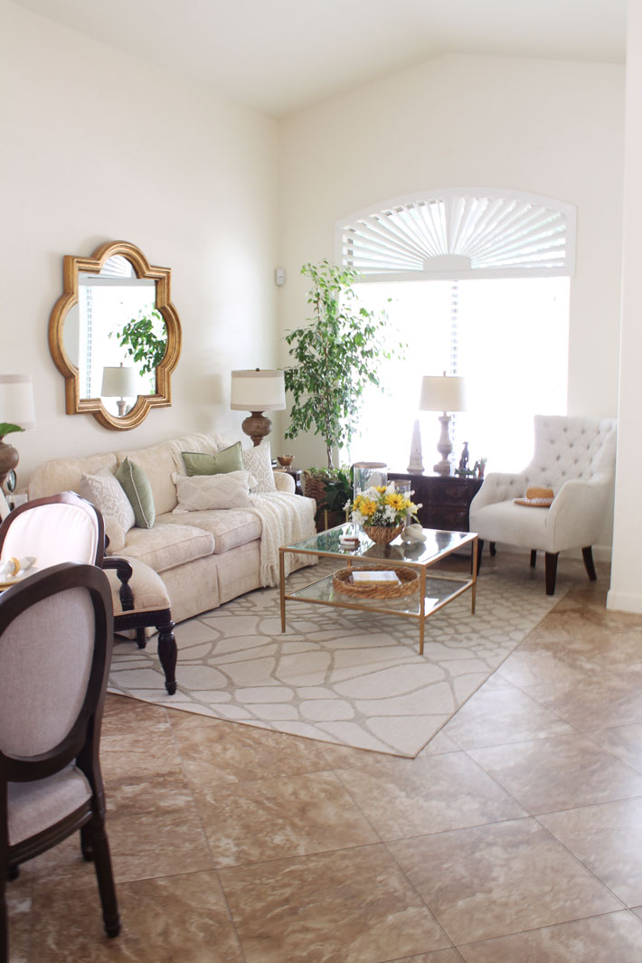 A simple solution since the living room had two-story ceilings and was much larger was to move the ficus tree to the living room. Now it can grow tall and bushy. Since it is more open and airy, it fits the room so much better than the corn plant.