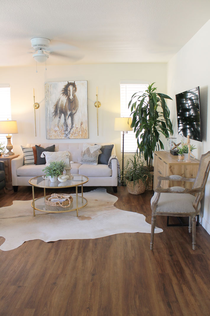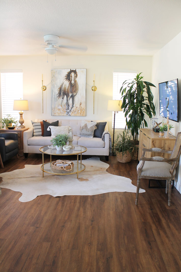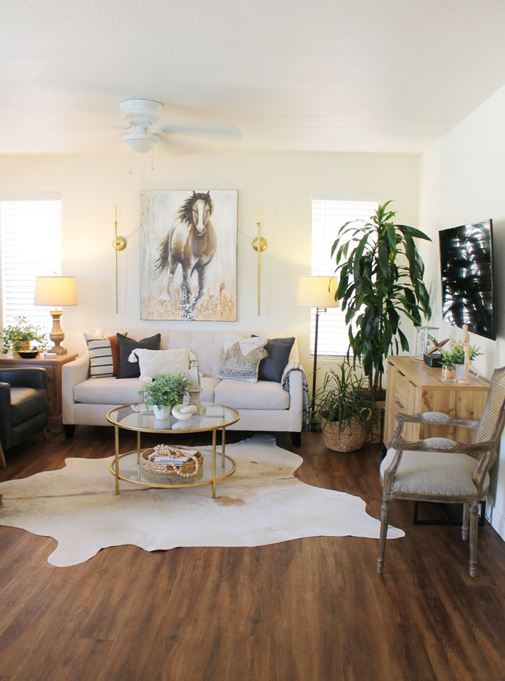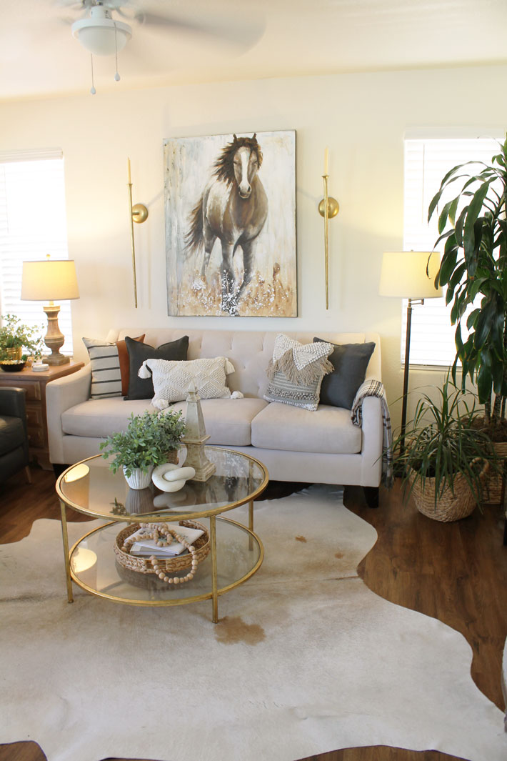 Since the temperatures are still really, really warm here in the desert, something that is cool and light seems to be what I am wanting. So I decided to keep the decor on the simple and light side for the family room.