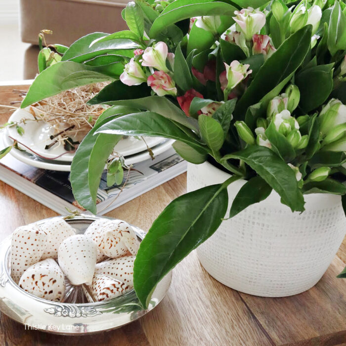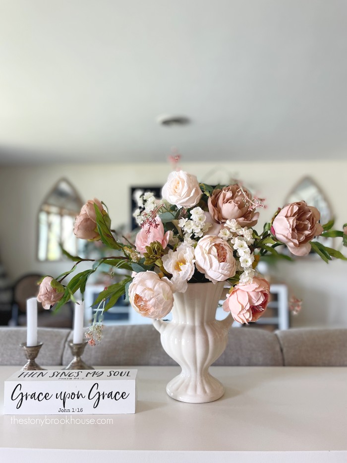 The Tattered Pew – Kelly loves to fill her beautiful Transitional Style Home with beautiful flower arrangements and eye-catching vignettes.