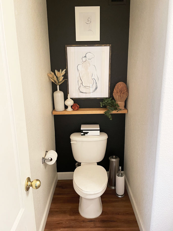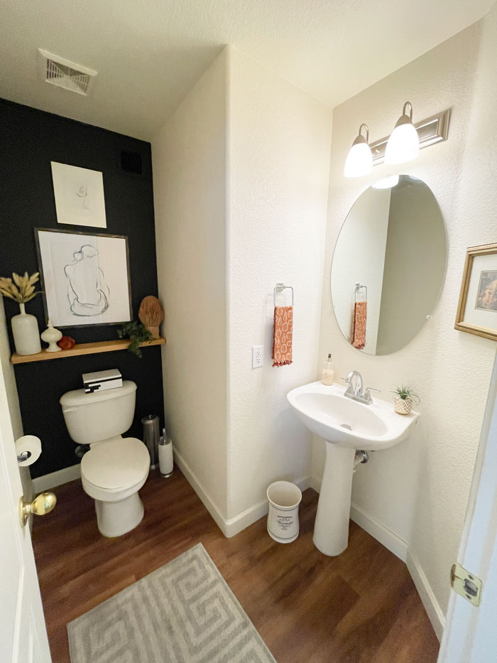 A DIY project and a few accessories and now my Powder Room doesn’t look Builder Basic at all. Total price -$50.78.