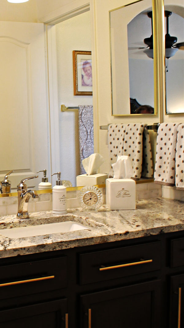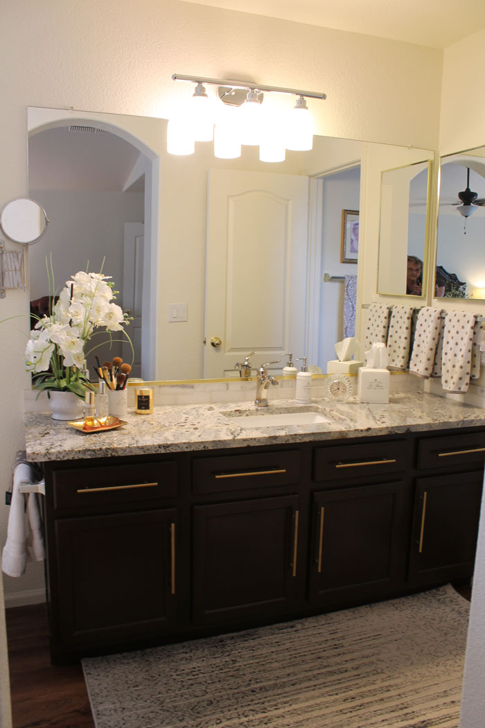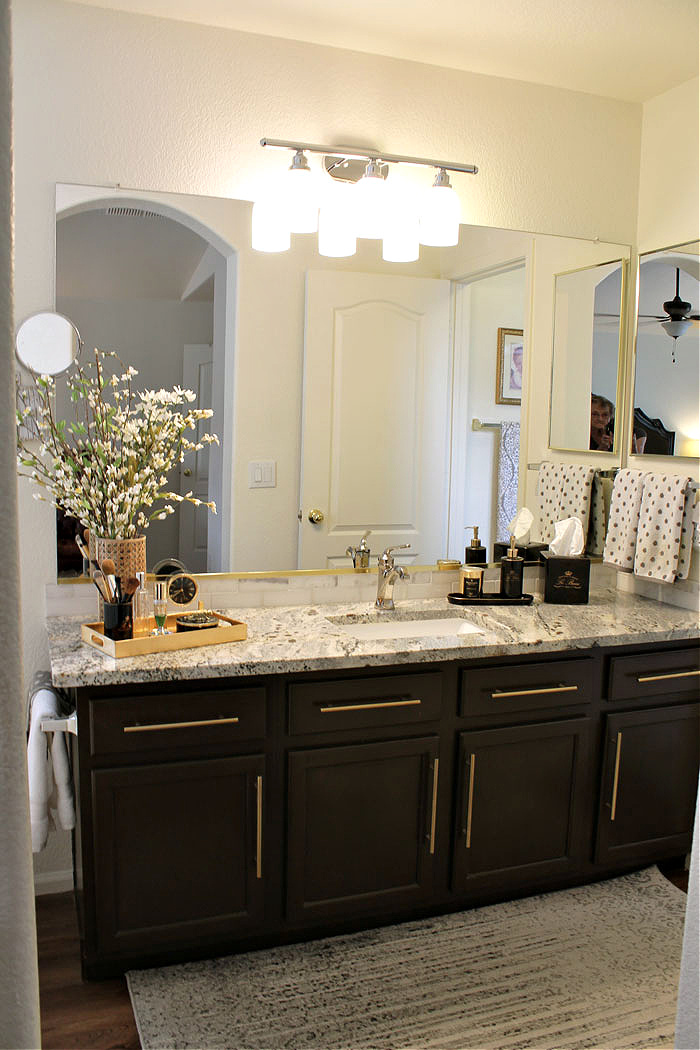 This refresh turned out so good! I loved the contrast between the white accessories and your dark cabinets, but changing them out to the dark accessories completely changes the feel in the room! I’ve been hesitant to have dark cabinets in my master bathroom, but now I’m starting to think that I need to add a few of those color samples to choose from. Thanks so much for sharing!