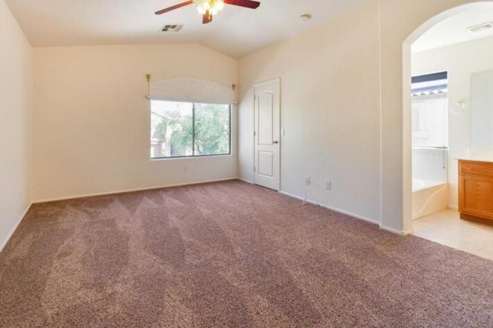 Master Bedroom – This is a nice space and the bonus is there are two closets, you can see the single door – that is a walk-in that I chose. Hubby chose the 8 ft. slider just inside the door.