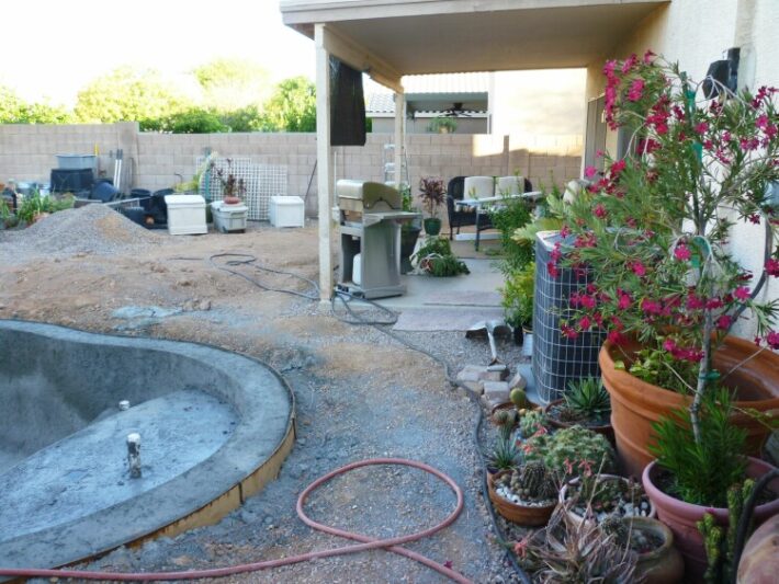 We spent March getting quotes from several pool contractors The biggest thing on my wish list for a new home was to have a pool. Well God didn’t disappoint here either. We found the right builders and by the middle of April they dug the hole. You just can’t believe how much this means to me. Living in the desert with temps way above 110 for a good portion of the year, this is the only way you can ever enjoy being outside. By the first week of June Our Pool Was Finished.